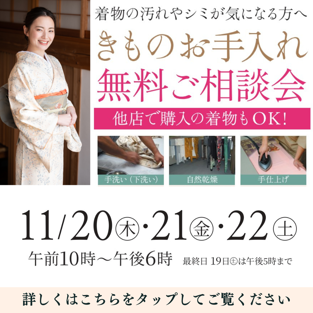 当店独自の「手洗い・自然乾燥・手仕上げ」により、絹本来が持つ風合いを取り戻しながら、汚れを落としていきます。ぜひ比べてみてください。