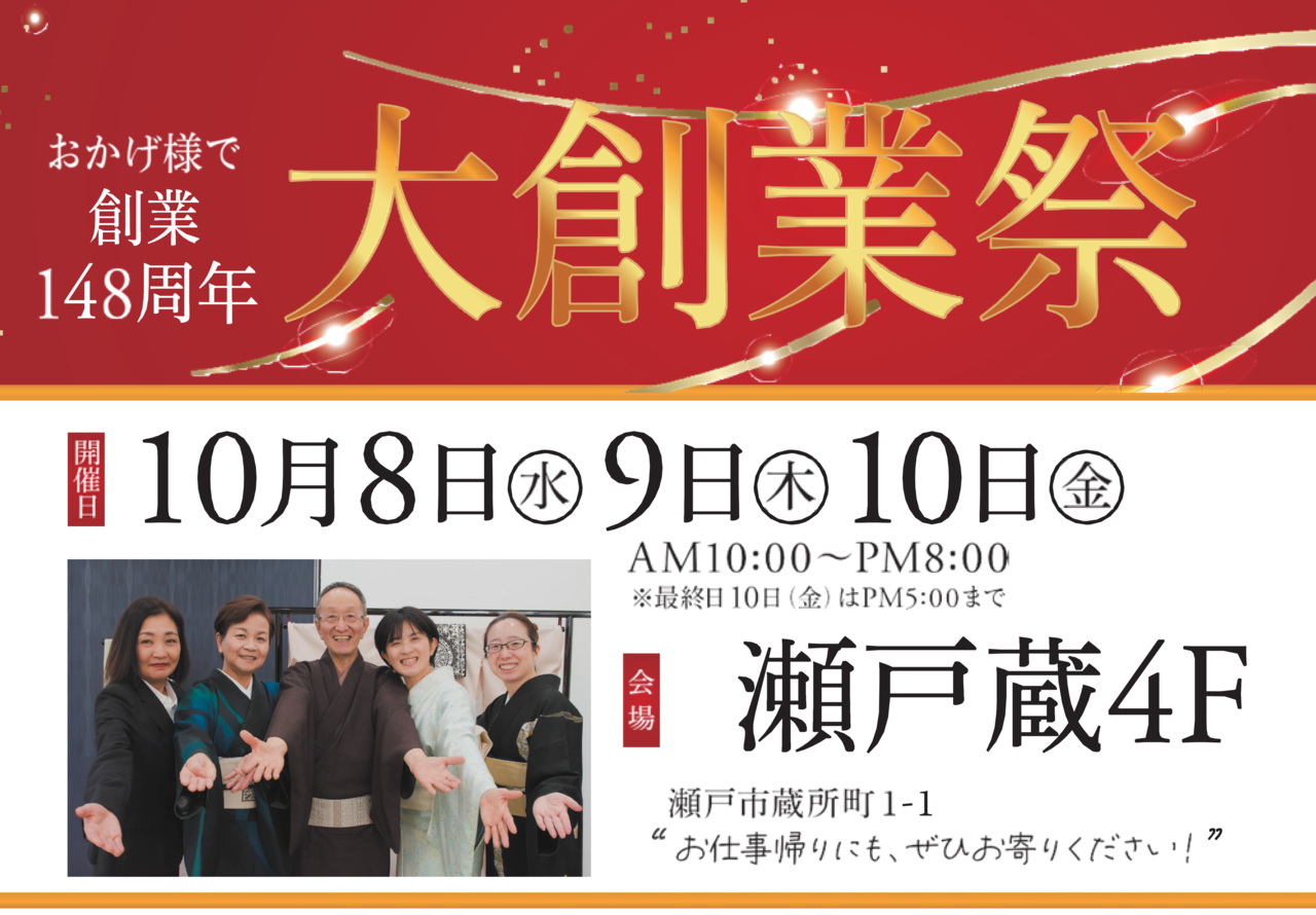 おかげ様で和の美は創業148周年を迎えることが出来ました。心より感謝申し上げます。