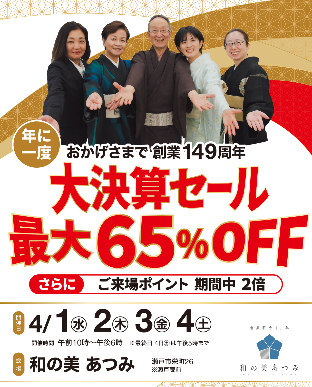 愛知県瀬戸市・尾張旭市・長久手市の着物専門店。着物・着物クリーニング・着付け教室をお探しなら「和の美あつみ」へどうぞ